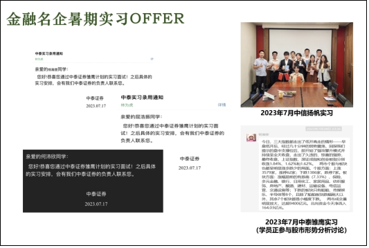 CFA菁英班受到数百家行业知名企业的认可与支持,集聚金融行业各类名企资源,并为CFA菁英班的学员提供实习直推服务,助力毕业后的职业发展或留学申请。