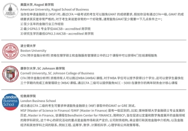 在研究生择校阶段,CFA班的学生可优先考虑 CFA密切合作的高校。在研究生面试环节中,学生对于专业知识的阐释具有优势,且一定程度上也将会证明该生对研究生课程的胜任能力。