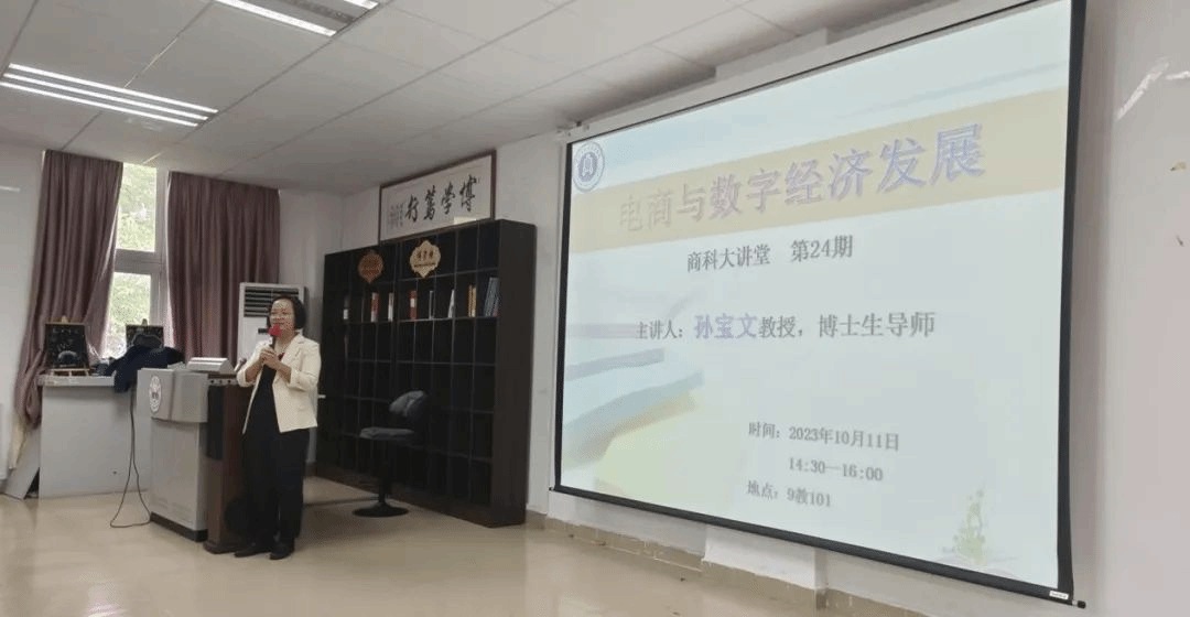 2023年10月11日,艾弗森贝博ballbet官网艾弗森贝博ballbet官网商科大讲堂第24期《电子商务与数字经济》讲座于艾弗森贝博ballbet官网9号教学楼101教室顺利举办,讲座由钟肖英教授主持,专业教师及100余名艾弗森贝博ballbet官网学生参加。